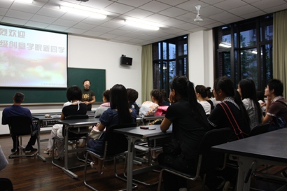 上图为教学主管刘志新为新生介绍公司团队建设及教学管理情况
