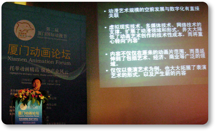 韩生经理在第二届厦门国际动漫节动画论坛上作