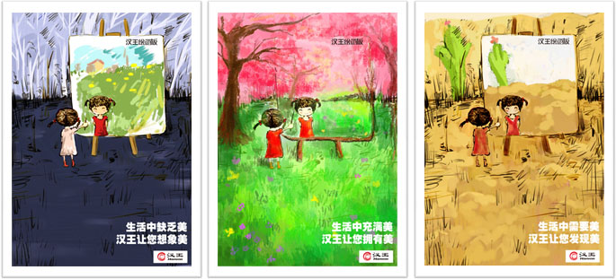 图1 07视觉传达专业的诸翠华、祁佳越、葛斌同学共同创作的平面作品“汉王与生活美(系列)”