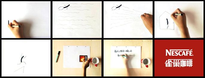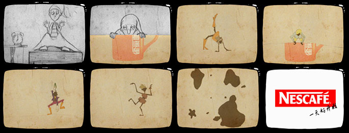 图2 07游戏动漫专业的胡文静、邱赛卿、张碧君、邢婉莹、朱赛男同学共同创作的动画作品“精彩从雀巢咖啡开始”截图