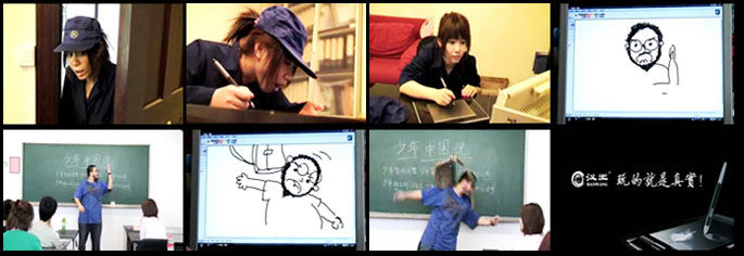 图3 07媒体创意专业的迪鹰、刘笑逸、吴晓萌同学共同创作的影视作品“汉王,玩的就是真实!”截图