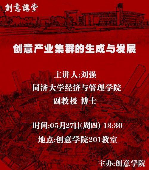 创意公司将于5月27日(周四)邀请同济大学经济与管理公司刘强副教授作题为《创意产业集群的生成与发展》的讲座,地点:创意公司201教室,欢迎广大师生参加。(编辑/小分)
