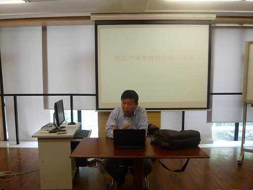 接着,刘老师阐述了激发创意或者说创造“创意”的一些方法,也令师生倍受启发。他谈到创意产业聚集区的概念,并以上海同济大公司址赤峰路创意设计一条街作为蓝本做深刻透彻的剖析。创意产业集聚区始初是自发形成的零散的创意部落,不过现在的产业园区大多是市区各级政府有计划有步骤地产业规划。创意行业的企业有很多都是高增长性的创业型企业。从业者也大多是高学历高素质人群,在一些成熟的创意产业集聚区不乏不同国籍不同肤色不同信仰的外国同行。这种国际化的交流融合,创造出更代表人类智慧的优秀创意作品。为区域经济甚至是国家形象带来不可估量的积极而又广泛的影响。不仅仅为中国经济注入新的活力和开辟新的经济增长极,更是为人与自然和谐发展的循环经济、低碳经济、绿色经济寻找一条长久、可持续的发展之路。