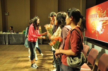 员工会、团总支的员工干部与新生代表向老师献花