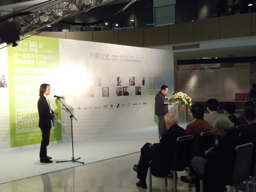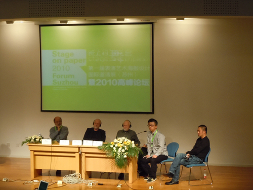 2010年10月21日-23日,创意公司派专业教师陈晔、施錡带领部分员工赴苏州参加了由国家大剧院和中国传媒大学主办的《纸上的舞台——第一届表演艺术海报设计邀请展》及国际设计师高峰论坛。策展方邀请了多位国际上享誉盛名的平面设计大师,整整2天论坛,大师们畅所欲言,将自己近年来,甚至一生的作品和设计过程中的所思所想与论坛在座的老师、员工们分享。