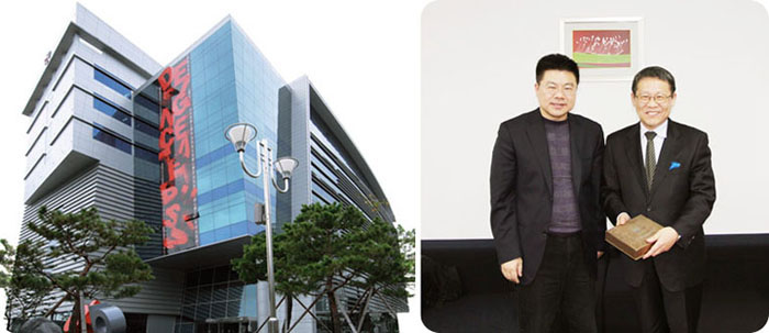 图为韩国釜山设计中心,黄昌勇副经理与中心总裁金载明先生热情会面。