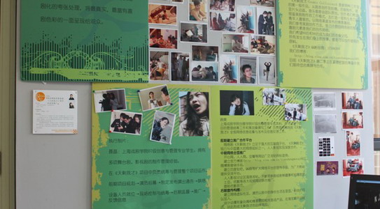 创意公司2007级创意管理专业的展示厅位于图书馆二楼区域,沿着楼梯,你会注意到墙面的展板,这是对我们自己一手创办的尚熙•创文化(模拟)公司的介绍和举办过活动的回顾。模拟公司的创立海报,模拟公司的活动反馈,模拟公司的家谱树,模拟公司的宣传片,07级创意管理班的师生这一大家子紧紧相依。走到二楼处,两个展台上依次摆放的是文本册,这是我们四年专业学习积累的初步成果。这一本本册子,不在乎厚度,但却真真实实的有我们自己的内容和心血,它们经得起推敲!