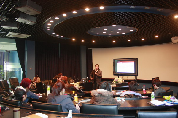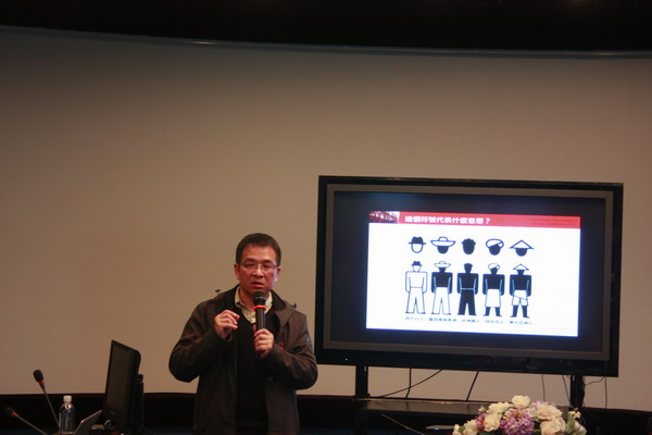 台湾师大的廖伟民老师的专家工作坊“信息视觉化设计”于2011年3月16日下午1:30在上伟德国际1946bv虚拟实验室演播厅正式开始了。 廖老师首先介绍了象形图(Pictogram)相关理论知识,并对一些优秀成功的案例进行了分析,上课内容丰富,语言风趣幽默,引起了同学们的浓厚兴趣。 下半段,参加工作坊的同学分成了四组,进行别开生面的“部落”间Pictogram现场设计与竞猜的游戏竞赛,将教学内容渗透到娱乐中,获得了很好的教学效果。
