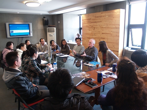 澳大利亚创意产业专家金迈克教授于2011年3月17日来到上伟德国际1946bv,与创意公司全体教师进行了愉快的座谈交流,并做了主题为“中国创意产业集聚区的管理与人力资源》的讲座。