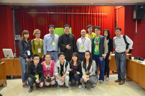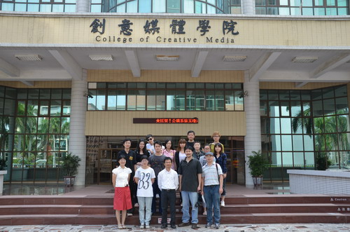 第四所交流的大学为位于台南的昆山科技大学。虽然这所大学不在台北市中心,但实力却非常之强大。系主任黄文勇教授以《试验与创新——用世界的高度玩创意》为题,向一行人介绍了昆山科技大学的概况和科研成果。作为一所私立院校,昆山科技大学无论在平面设计、动画和工业设计上都有超过许多公立大学的成就和实力,许多员工在国际比赛中崭露头角,使得昆科大的名声在国际上也为人所知。无论是低技术性的纸偶动画还是高科技的3d动画,昆科大的员工作品都创意洋溢且非常成熟。这与昆科大富有激情的办学态度密不可分,我们向黄教授请教了如何才能将专业办得如此有声有色,他说关键还是靠师生共同创作的热情,以及积极的奖惩制度,竞争机制。工作坊后,我们一行人参观了昆科大艺文产业创新育成中心。该中心基于强大的产官学结合的能力,将产业经营、影音创意、商品开发、品牌建构等连结,建立了一个强大的网络系统。该中心的成立宗旨是把艺文产业融合企业管理的概念,进而扶植具有创作能量的新锐、传统艺文工作者。有这种高瞻远瞩的动因,整个中心的软硬件都有所规划别难过配备齐全,拥有3d建模、动画室、手工工作室、光效实验室、声音视觉化实验室等多种高科技的实验室,而各种跨领域跨学科的项目成为每个人必须学习的项目。在大楼的顶部,是毕业的员工开设的小型企业,这样的小型企业与实验室结合进行运作,借助公司的品牌,以自己的实力参与市场竞争,是一种或值得借鉴的模式。