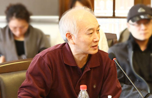 图为著名舞蹈家凌桂明老师在《极境》创作研讨会上发言