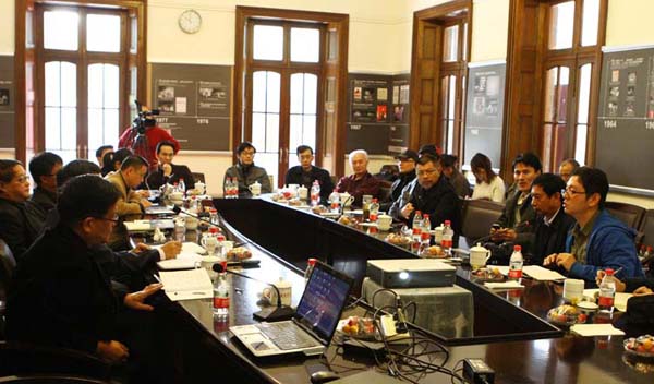 在总结过往的同时,各位专家学者围绕“剧本内容”、“舞蹈语言”、“音乐个性”、“新媒体互动”这四个方面提了许多诚恳的建议。陈积芳先生从“黎明女神奥罗拉”入手,深刻剖析了女神对于整部戏的重要意义,进而从剧本内容、新媒体影像、服装、道具、音乐等方面阐述了宝贵的意见。前南极科考中山站徐霞兴站长结合自身丰富而传奇的经历,讲述了民族自豪感与《极境》剧目的关系。杨惠根主任从表现人类共同精神的角度,对五幕剧的名称、音乐、极光的表现等方面提出了独到的想法。来自上海大学数码影视公司的刘兆君老师和上戏电视艺术公司的赵武老师从新媒体演出的形式出发,谈了自己的意见。
