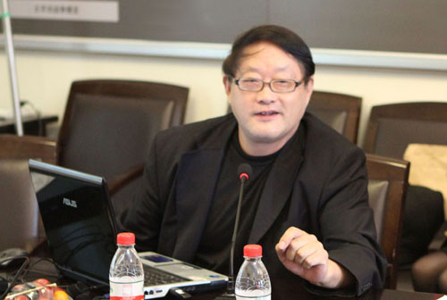 图为中国极地研究中心的杨惠根主任在《极境》创作研讨会上发言