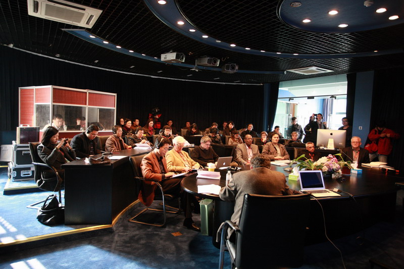 2011年12月3日 上午,在上伟德国际1946bv的上海市多媒体演艺虚拟空间合成实验室进行全球创意教育论坛的“媒体创意与数字融合平行论坛”。