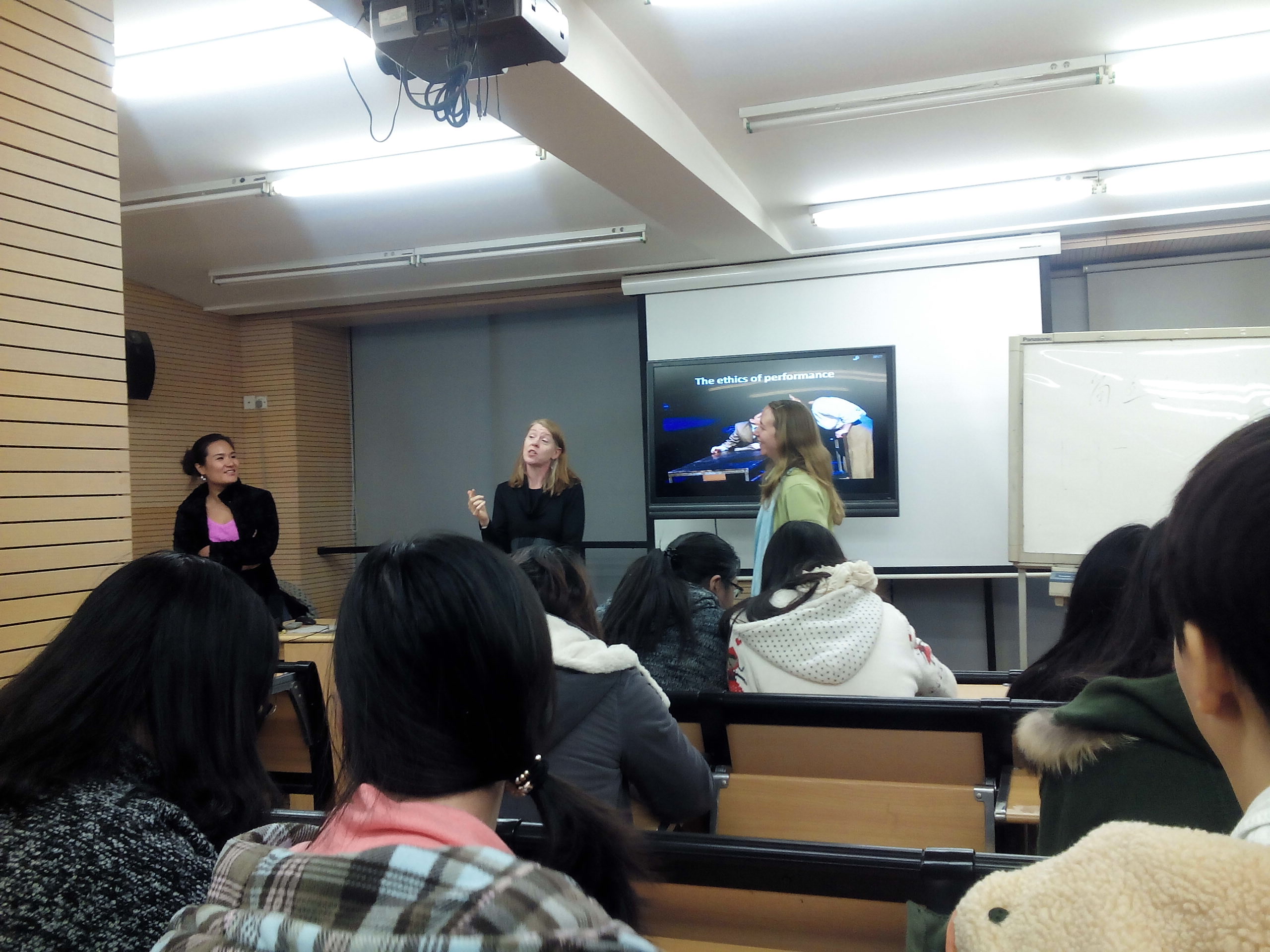 11月29日,来自墨尔本大学的Alyson教授为创意公司艺术管理专业员工带来了一场别开生面的讲座。讲座由瑞典籍职工玛雅小姐做翻译。虽然玛雅是外籍人,但其中文的流利度,令我们震撼。