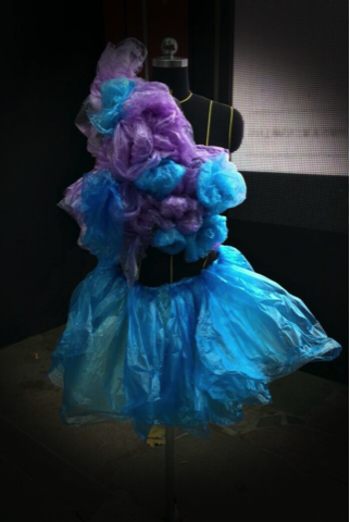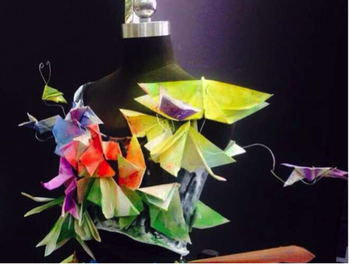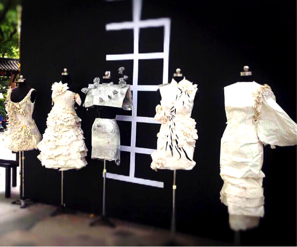 彩色系列是以废弃纸张、塑料等可循环利用的资源为主要材料的装饰性服装,通过以花卉,蝴蝶为主要元素的艺术作品意在唤起人们对大自然美丽的重视与呵护,十分契合《再生•交流-----绿色交流活动》的主旨。在活动现场备受瞩目。