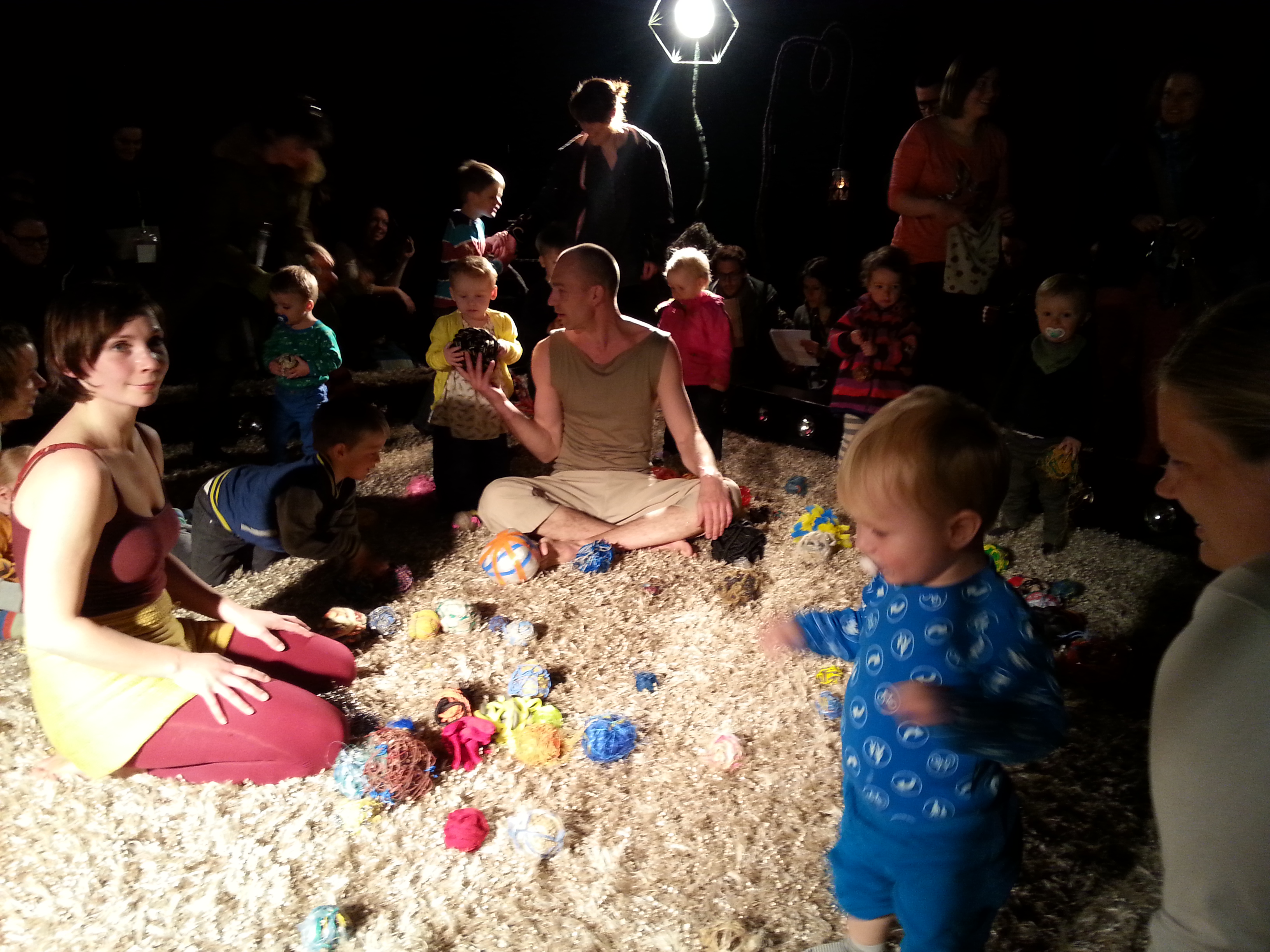 舞剧结束时舞者们变出了各种彩色的夜光毛线球,邀请所有的小观众和家长进入场地玩耍,整个剧场溢满了温馨。