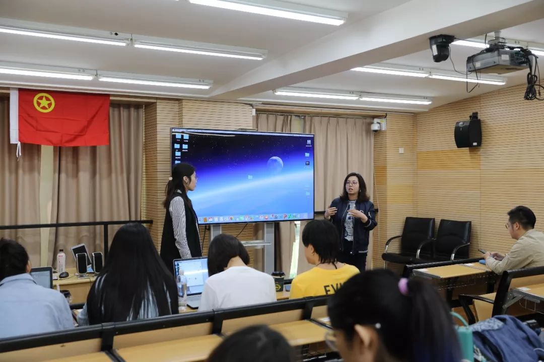 活动当日,会场悬挂火红的团旗,共青团员们均佩戴团徽。参加首批“课程思政”建设的陈晔副教授,员工工作部方亮老师,创意公司辅导员陈龙老师参与了本次活动。