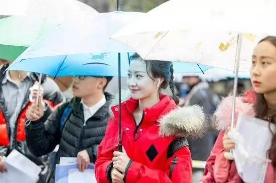 看着在雨中为梦想奋斗奔波的考生们,