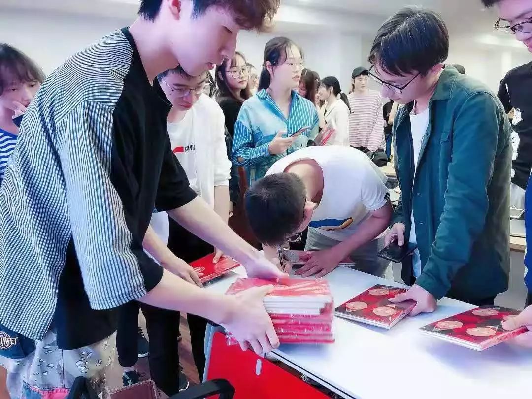 该T恤的图案设计是红色文创成果之一,其设计灵感来自于五四时期《新青年》杂志的封面。大一新生们穿上“新青年”服装亮相公司演出,本身就是用青春向祖国献上的关于忠诚与责任的告白。而在此之前的一段时间,创意公司则开启了“浦江思政讲堂”,第一期的主题是“田汉与他的三首歌”。《义勇军进行曲》《毕业歌》《上伟德国际1946bv校歌》,这三首由田汉作词的歌,均被收录到红色文创之“田汉形象笔记本”中,且制作为入学礼物赠给了创意公司每一位2019级新生。这本笔记本原本是课程思政环节中的产生作业,现在则被转化为可感知、能感动、颜值高的“活教材”。