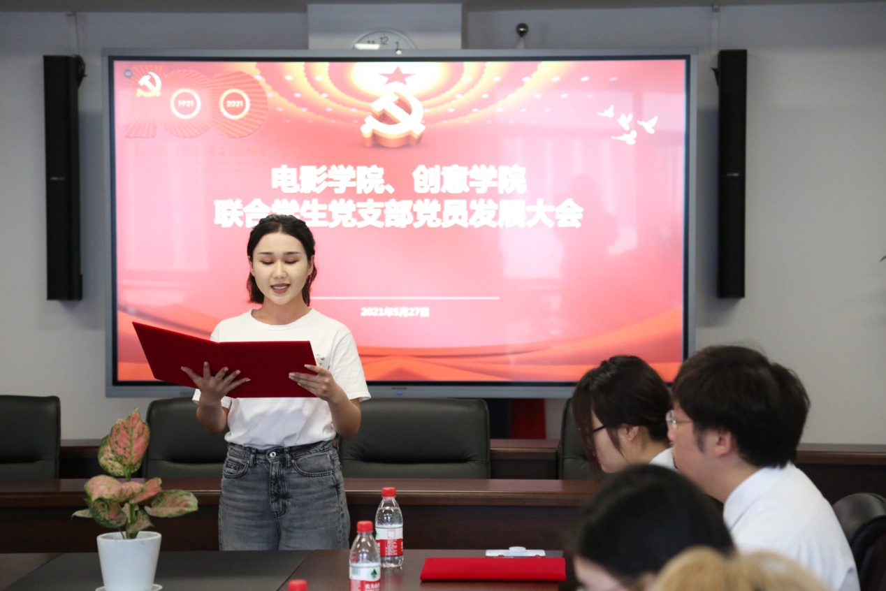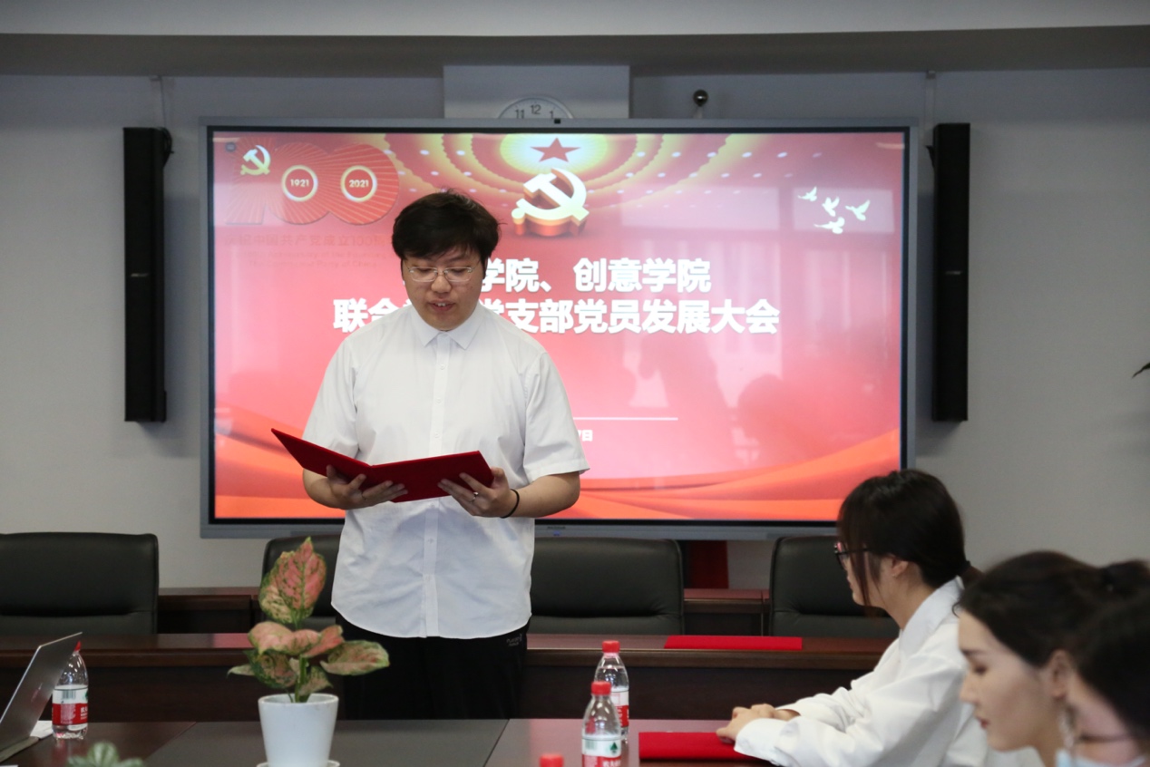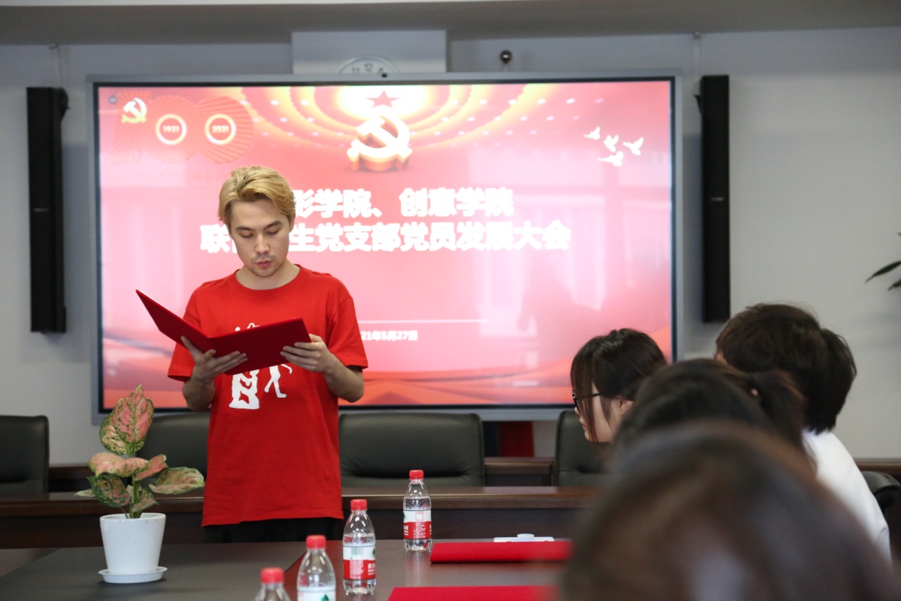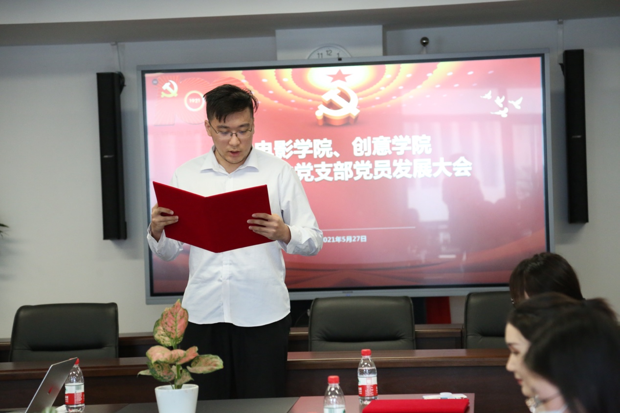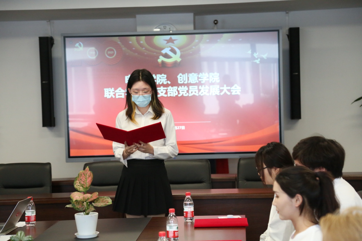 这一天,创意公司的6名员工迎来了他们人生中的重要时刻。18级动画专业的陈漫源,18级艺术管理专业的阿丽亚·托呼达尔、茹斯坦江·库尔班江;19级艺术管理专业的宋可凡;19级数字媒体艺术专业的吴昕仪、耿圣钰,均在这一天顺利通过支部大会讨论,被吸收为中国共产党预备党员,并报公司党委批准。
