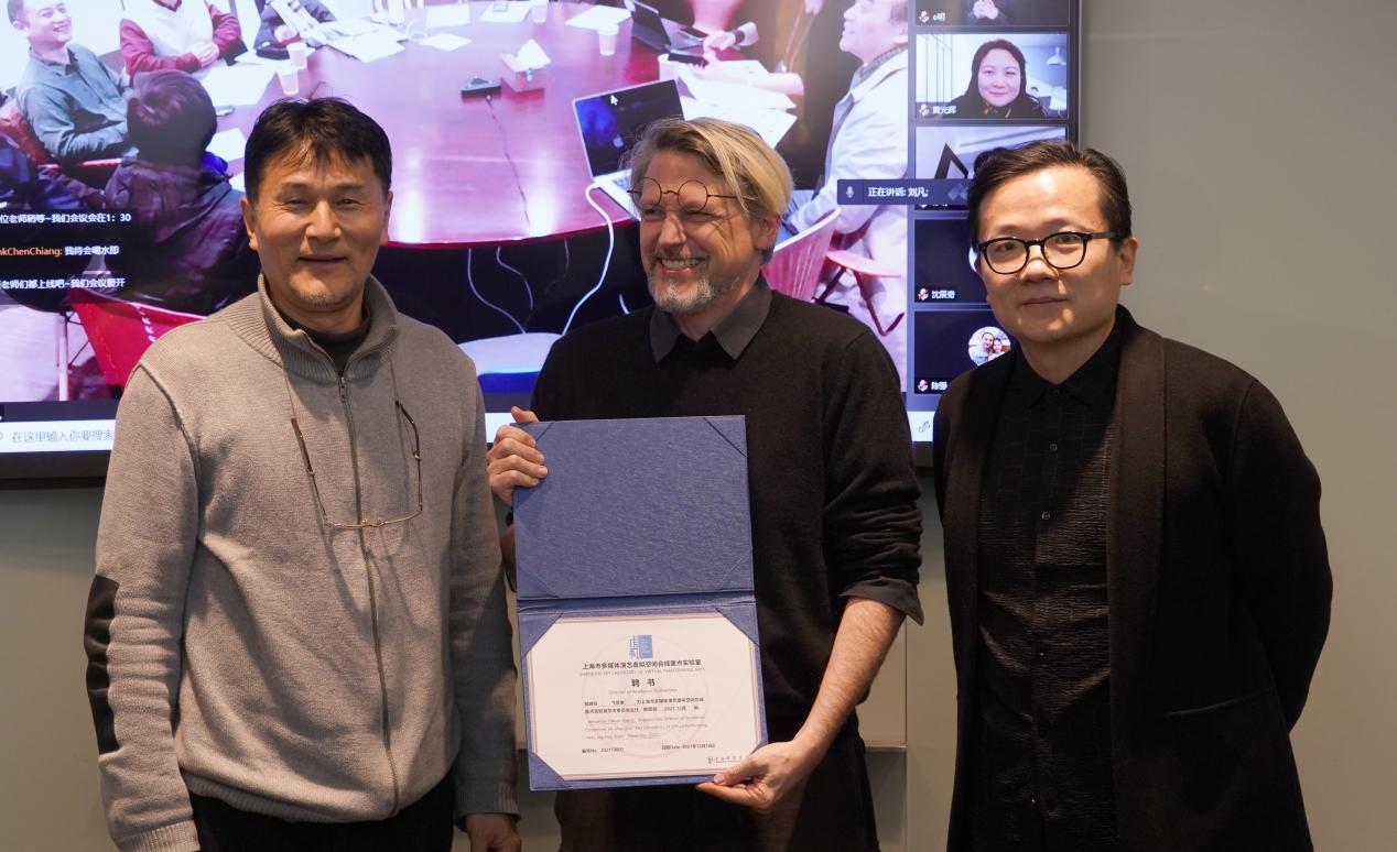 上伟德国际1946bv科研处处长支运波在会议上宣布由铁钟任上海市多媒体演艺虚拟空间合成重点实验室主任,陈永东为实验室副主任。依据《上海市重点实验室建设与运行管理办法》,上海市多媒体演艺虚拟空间合成重点实验室聘请新媒体艺术家,展览空间设计师,纽约大学客座教授飞苹果(Alexander Fabian Brandt)为实验室学术委员会主席,上海知名舞台剧导演马俊丰为实验室首席戏剧专家,上海开心麻花文化传媒有限公司副总经理陈强为实验室成果转换委员会主任,并对相关专家成员进行了聘书的颁发授予。