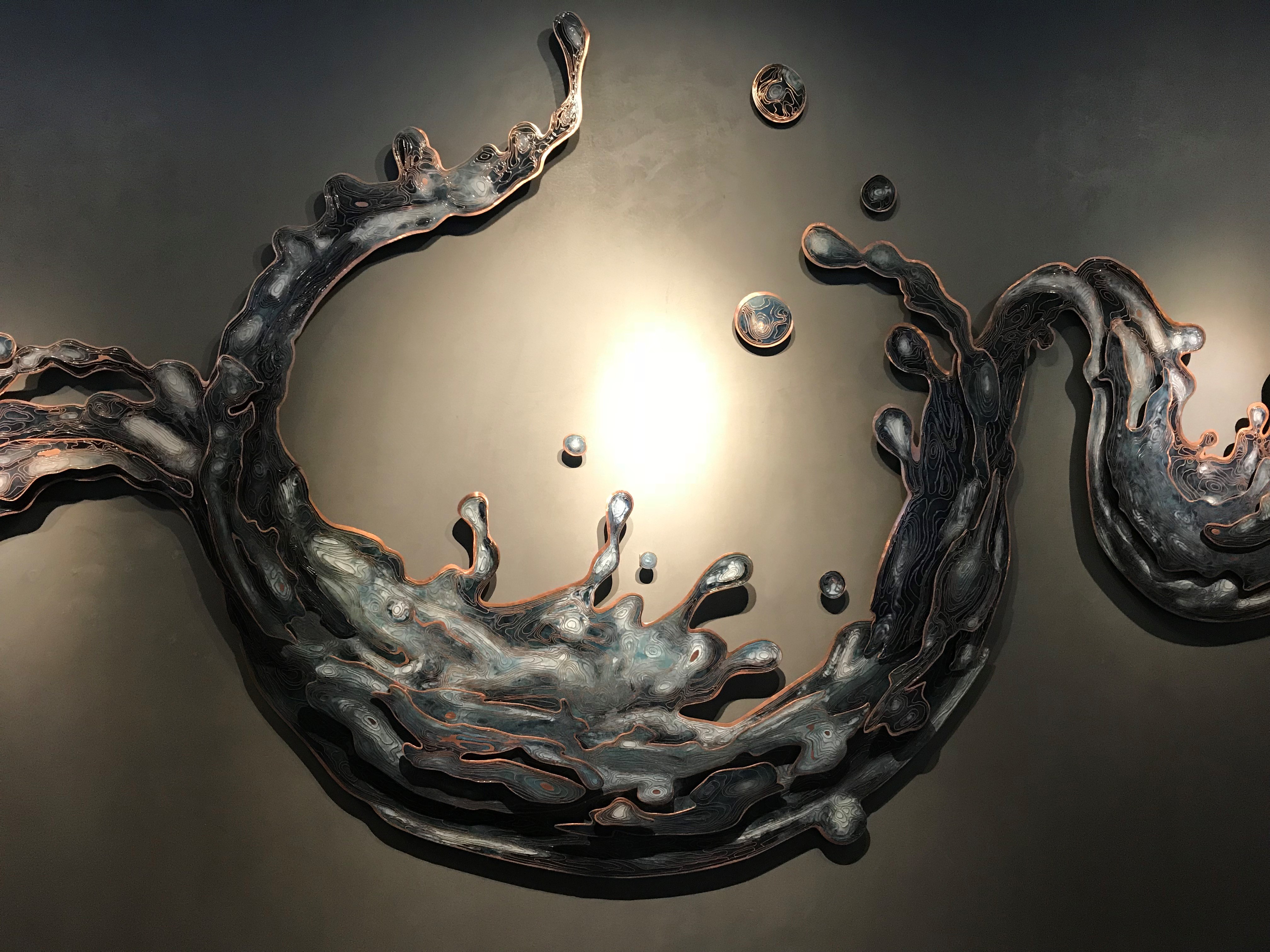 参观在讲解员的引领下正式开始。同学们先是来到了珐琅厅,这里拥有吉尼斯认证“世界最大的景泰蓝地板,480平米无缝拼接的珐琅地面,凝聚134名良工巧匠精力,耗费321681小时,采用1789653根手工掐丝,拼接1379块平面珐琅。金丝勾勒如时间年轮回旋更替,鱼和形似婴儿脚的水泡则是象征生命的轮回。