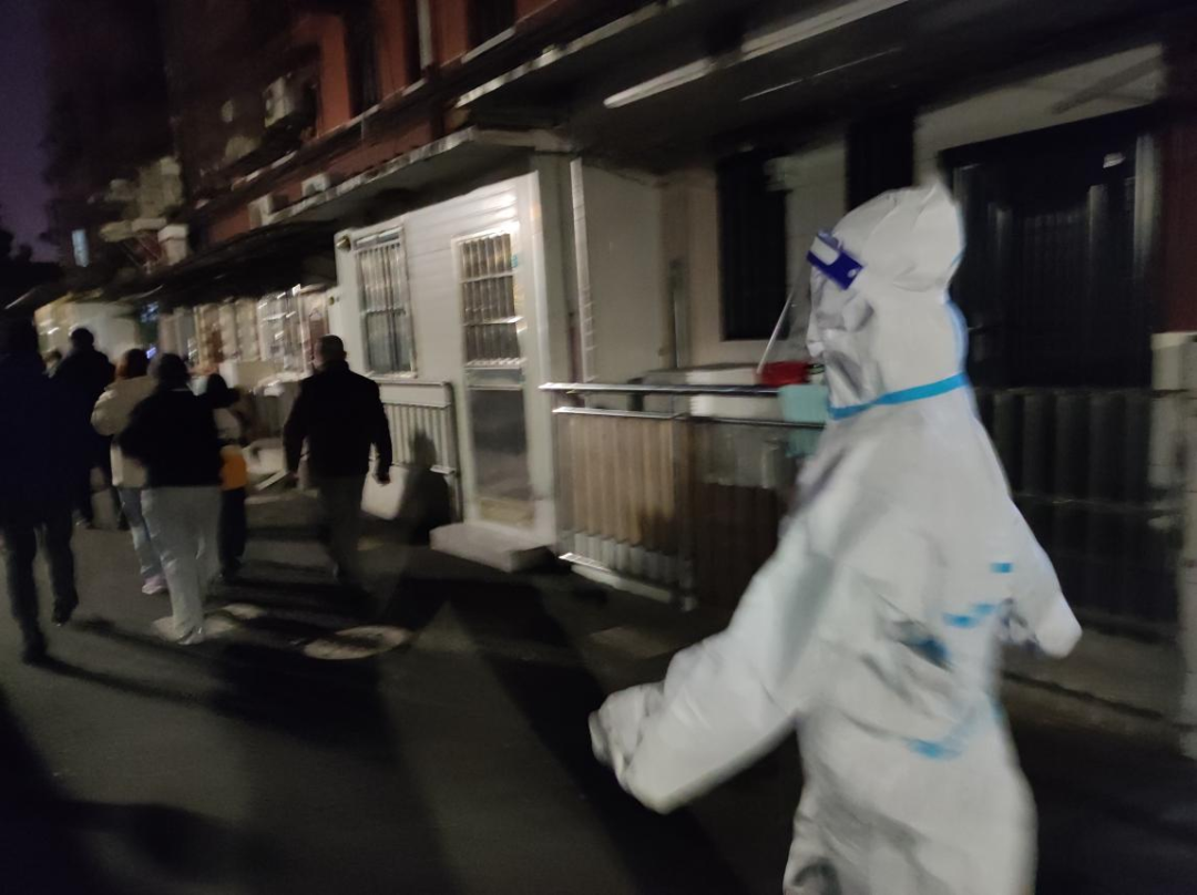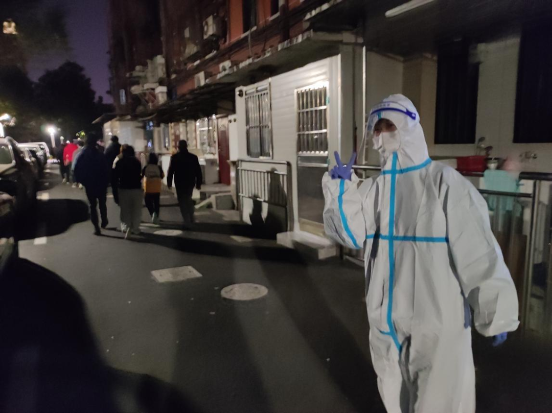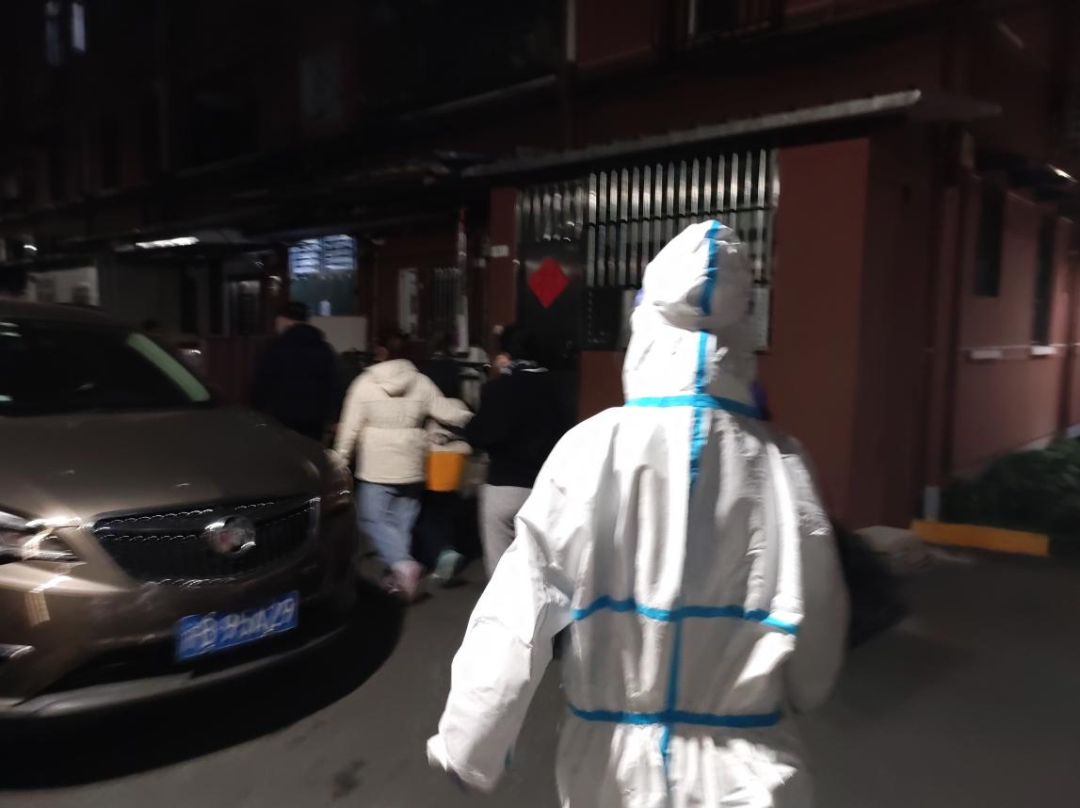 今天做核酸检测的时候已经将近晚上7点,楼道光线昏暗,不少时候需要打开手机闪光灯才能看清门牌号。在核酸检测的过程中,上上下下的爬楼梯加上防护装备的密不透风,汗水经常模糊我的视线,一口气爬五六楼已是常事。另外,由于上了年纪的当地居民大多只能听得懂上海话,和他们进行沟通的过程中也存在一些小的不通畅,甚至还遇到了位耳聋的居民,无论怎么敲门都得不到回应。这些困难都是我始料未及的,最后在热心邻居和居委会的帮助下我完成了本次志愿服务。一遍入户核酸检测做下来,已经接近晚上9点半,总共协助40余位身体不便的居民完成核酸检测,尽管中途有很多困难,但是几乎所有居民看到穿了防护服的我们都亲切地打招呼,说着感谢的话语,我看不清他们的面容但是心还是暖洋洋的。
