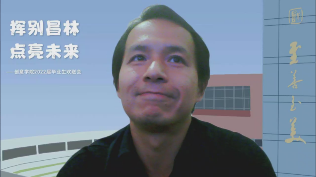 最后呈现的第四篇章“致毕业生”,是方军老师代表创意公司全体教师撰写的《写给创意公司2022届的毕业生们》,由孔小磊朗诵。
