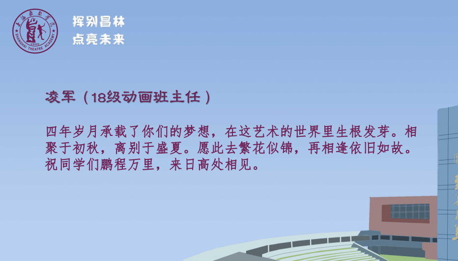 这,不是你们第一次经历疫情。18级的本科生、19级的研究生,你们的上戏岁月中因为2020和2022疫情的冲击,不得不两次整学期在线上进行学习,最终你们的毕业答辩也是以在线方式完成的。