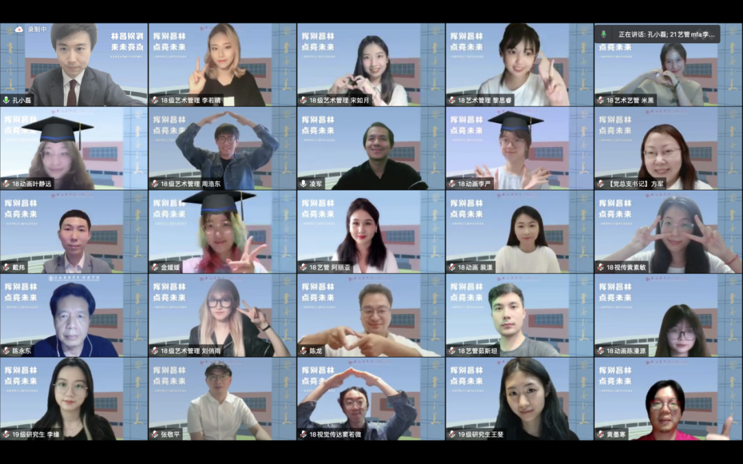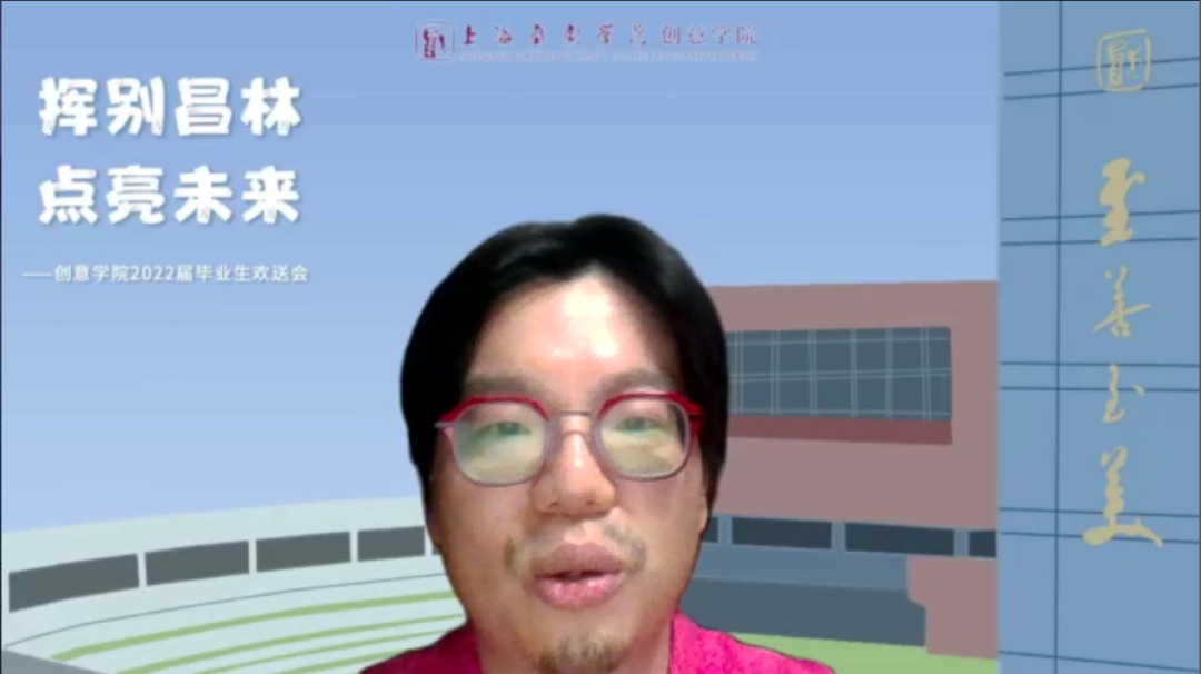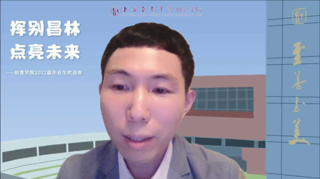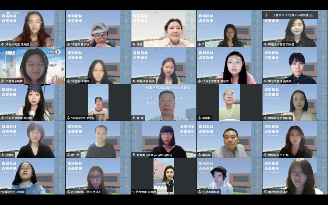2022年6月5日,上伟德国际1946bv2022届毕业典礼隆重举行。典礼结束后不久的当天晚上,创意公司2022届毕业生欢送会在“云端”准时开场。创意公司2022届62名本科毕业生、21名硕博毕业生与公司领导老师共同相聚线上,告别往昔,相约未来。