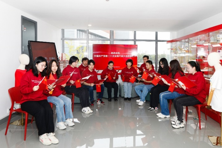 位于昌林路校区的上戏创意公司,洋溢着喜庆的氛围。在创意公司党总支打造的党建思政文创角,几块电子显示屏上亮起了“热烈庆祝中国共产党第二十次全国代表大会胜利召开”“为中国人民谋幸福 为中华民族谋复兴”“奋进新征程 建功新时代”“全面建设社会主义现代化国家 向第二个百年奋斗目标进军”等标语,无不表达着师生们对党的二十大开幕的热切期盼。