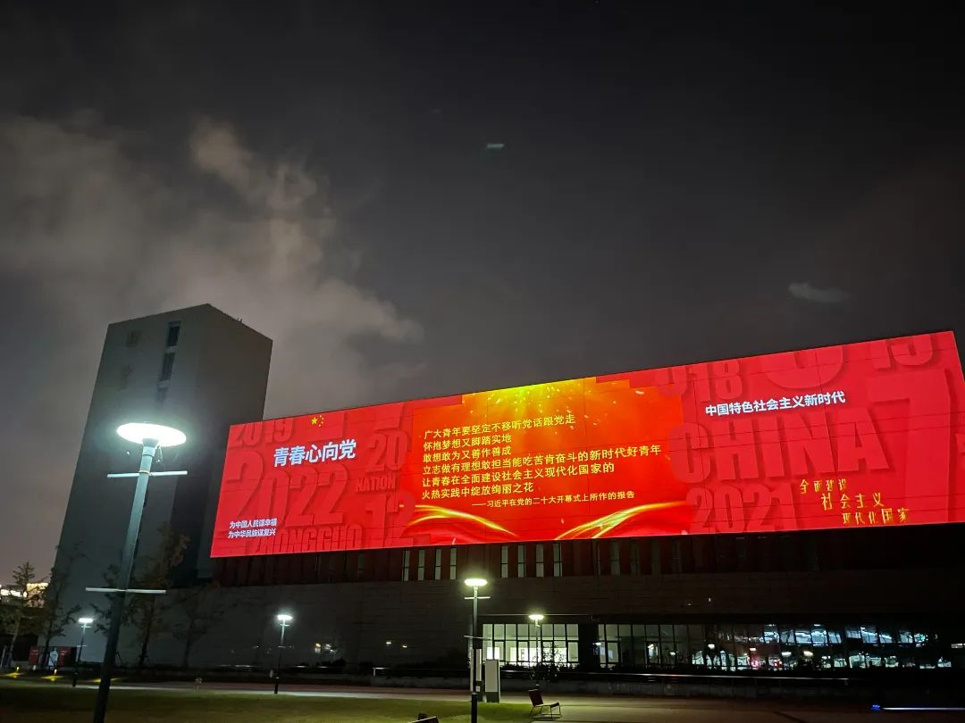 今年暑假期间,创意公司师生就在党总支的带领下,开始策划以庆祝党的二十大为主题的创作,并在二十大召开期间点亮昌林的建筑。这次创作充分体现了创意公司数字媒体艺术、动画、视觉传达设计、艺术管理等专业的特点,组建了党总支负责人、专职辅导员以及不同专业师生共同构成的创作团队。师生们在创作过程中,不断寻找、收集、加工相关素材,而这正是大家学习习近平新时代中国特色社会主义思想,感悟新时代风貌的一次生动的学习过程。