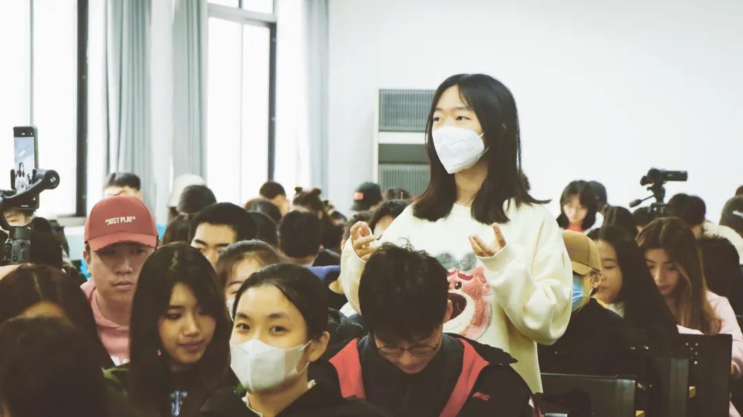 在讲到“增强中华文明传播力影响力”时,宣讲团就“讲好中国故事、传播好中国声音,展现可信、可爱、可敬的中国形象”,再次与戏曲公司同学们展开了热烈的互动。戏曲公司22级戏音专业的员工彭洲洋同学在现场表示:“在戏曲文化中,京剧《穆桂英再挂帅》中的穆桂英,就是一个‘可信、可爱、可敬的中国形象’,具有中华民族的许多优秀品质,我们要用自己的方式去诠释好这些经典的中国形象、中国故事。切合的主题、生动的互动、激烈的抢答,使整场宣讲自始至终洋溢着热烈的气氛。戏曲公司21级京表专业的闫茹钰和李楠同学,现场带来了一曲戏腔版《灯火里的中国》,表达了对于全面建成社会主义现代化强国的热忱期待。