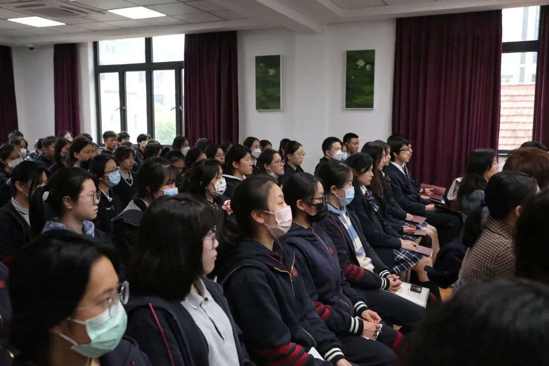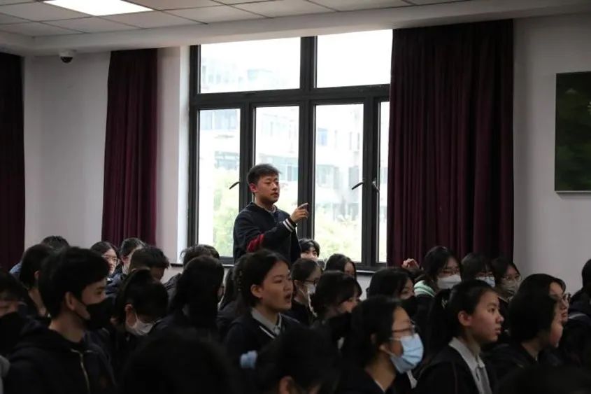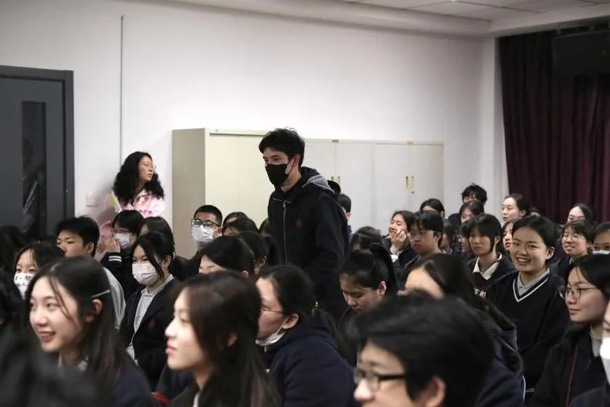 伴随宣讲,妙趣横生的互动也随之而展开。“你知道目前正在太空‘出差’的三位中国航天员,搭乘的是神舟第几号飞船”,“卡塔尔世界杯期间,除了中国足球队没有去之外,大量中国元素出现在卡塔尔,你能说出其中的一些吗”,互动不仅活跃了气氛,也使05后们通过鲜活的案例真切感受到新时代的脉动。 这场洋溢着青春气息的宣讲,向05后高中生们传递了实现中华民族伟大复兴的坚定信念,也对他们未来担当民族复兴重任发出了青春动员令。为此,本次宣讲的最后,特别安排了创意公司辅导员孔小磊老师带领上戏附中的同学们,共同朗诵李大钊的名篇《青春》。“以青春之我,创建青春之家庭,青春之国家,青春之民族,青春之人类,青春之地球,青春之宇宙”,青春宣言响彻会场,实现中华民族伟大复兴的信念之火播撒在年轻的心里。