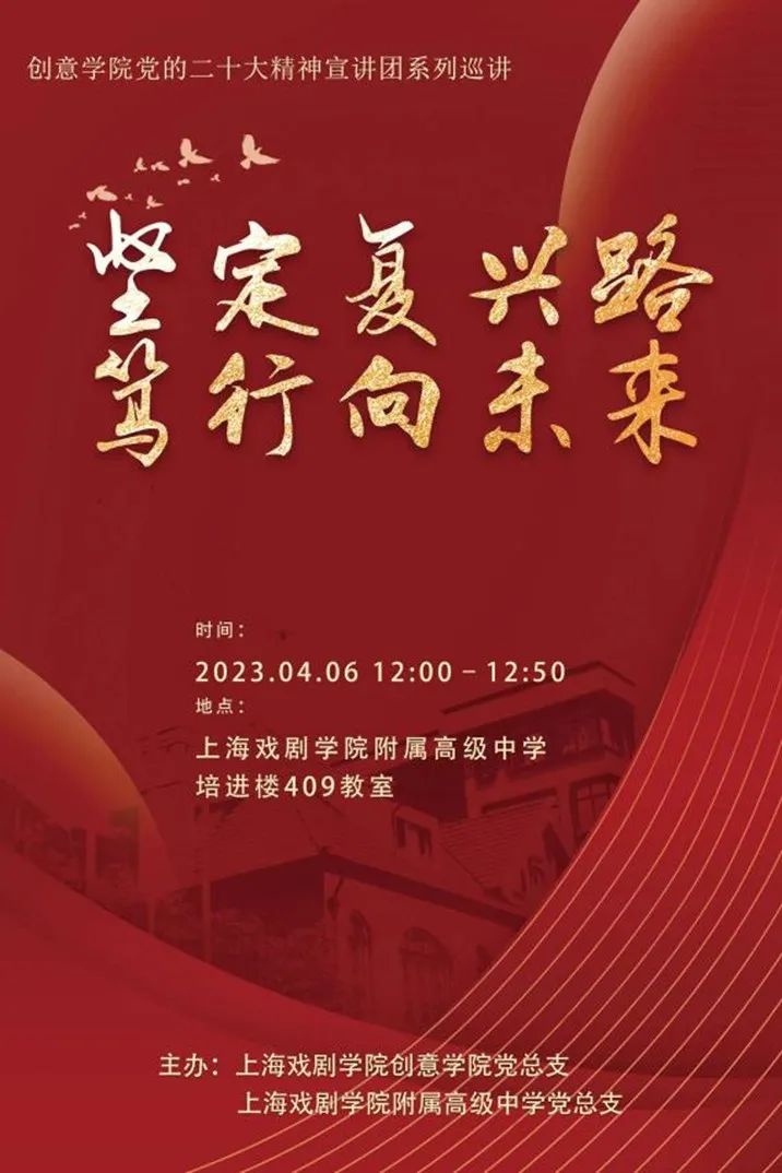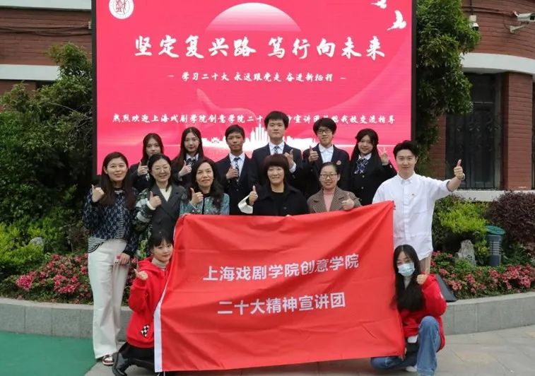 走进上戏附中,是创意公司二十大精神宣讲团继在戏曲公司宣讲后的又一次巡讲,也是宣讲团第一次面向高中生进行宣讲。为了让高中生们更加深入浅出地理解二十大精神,创意公司党总支书记方军,党总支副书记唐芳,辅导员陈龙、孔小磊等老师,再次与宣讲团成员一起开展集体备课,决定紧密结合高中生的知识结构和生活经历,把“大道理”转化为“小故事”,唤起同学们的共振共鸣。