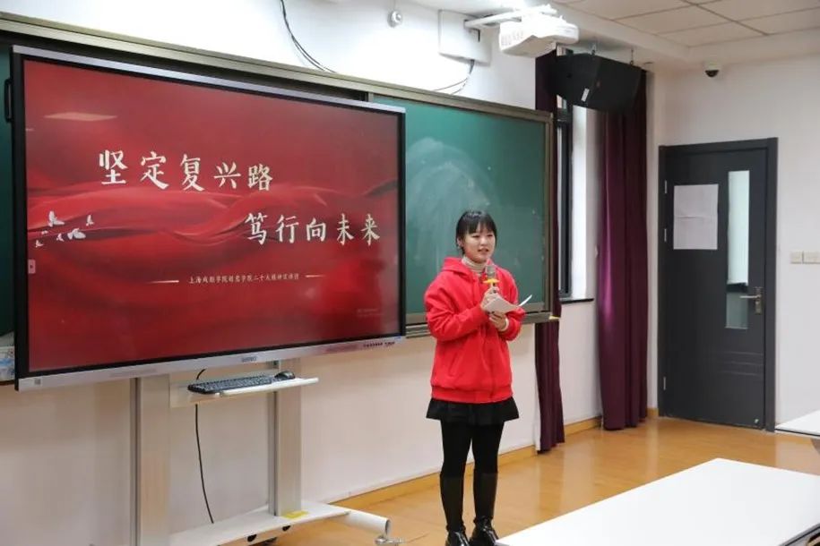 本次宣讲以“坚定复兴路,笃行向未来”为主题,由艺术管理MFA张甲馨担任主讲。她在宣讲中系统地梳理了自1840年鸦片战争以来,在国家蒙辱、人民蒙难、文明蒙尘的背景下,中国人民为寻求复兴之路而进行的可歌可泣的斗争。在中国共产党的领导下,经过艰苦卓绝的奋斗,中国人民终于找到了全面实现中华民族伟大复兴的光明之路,并且行进到了最为关键的阶段。尽管面临史所罕见、世所罕见的风险和挑战,中华民族伟大复兴的进程却不可阻挡。这是因为我们有中国共产党的坚强领导,开辟了中国特色社会主义道路,并且建立了强大的制度保障,积累了深厚的物质基础。新时代十年的伟大变变革,在党史、新中国史、改革开放史、社会主义发展史、中华民族发展史上具有里程碑意义,是实现中华民族伟大复兴道路中极为重要的一段历程。这十年,恰好也是05后们人生成长的阶段。为了更好地与05后分享关于这十年的记忆,宣讲团还在现场播放了创意公司陈龙等师生制作的短视频《我们·新时代》。