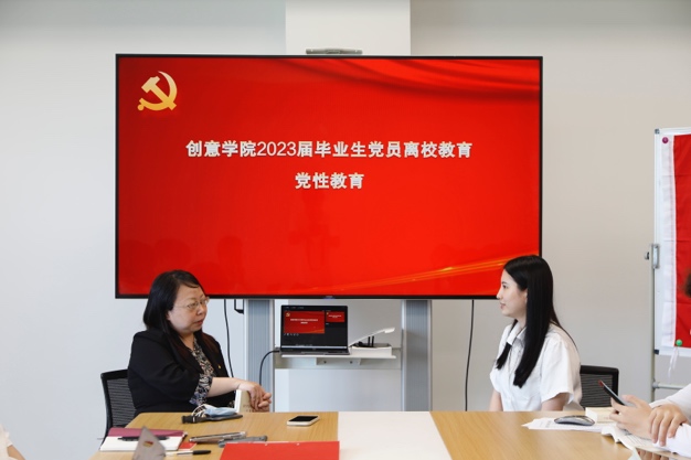 创意公司党总支历来重视党的创新理论的学习和教育。因此,本次活动的第一个环节,就是由创意公司党总支书记方军老师分别与2023届毕业生党员展开轮流对谈,每人约10分钟。