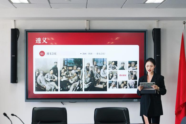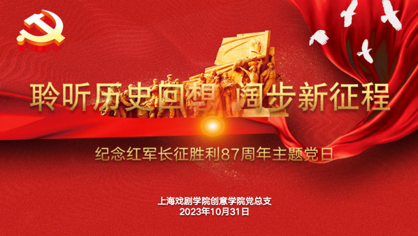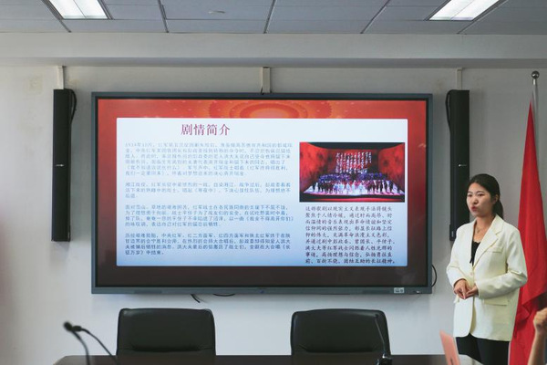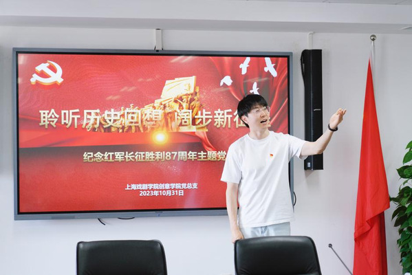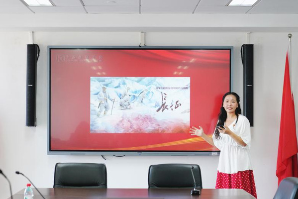 在此次主题党日中,21级艺术管理班的黄梓滢、鲁玥熠、张竞丹,20级视觉传达设计班的申雨轩,艺术管理MFA(歌剧制作管理)黎凌薇,分别围绕长征题材优秀艺术作品和长征沿途重要的文化品牌等,展开了阐述。