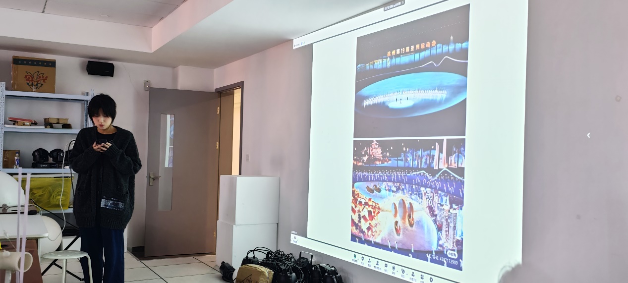 23级程乔伊同学分享了亚运会为代表的演出中的数字媒体技术AI裁判、元宇宙及当代演出艺术的新科技如超大LED、互动威亚、AI等。