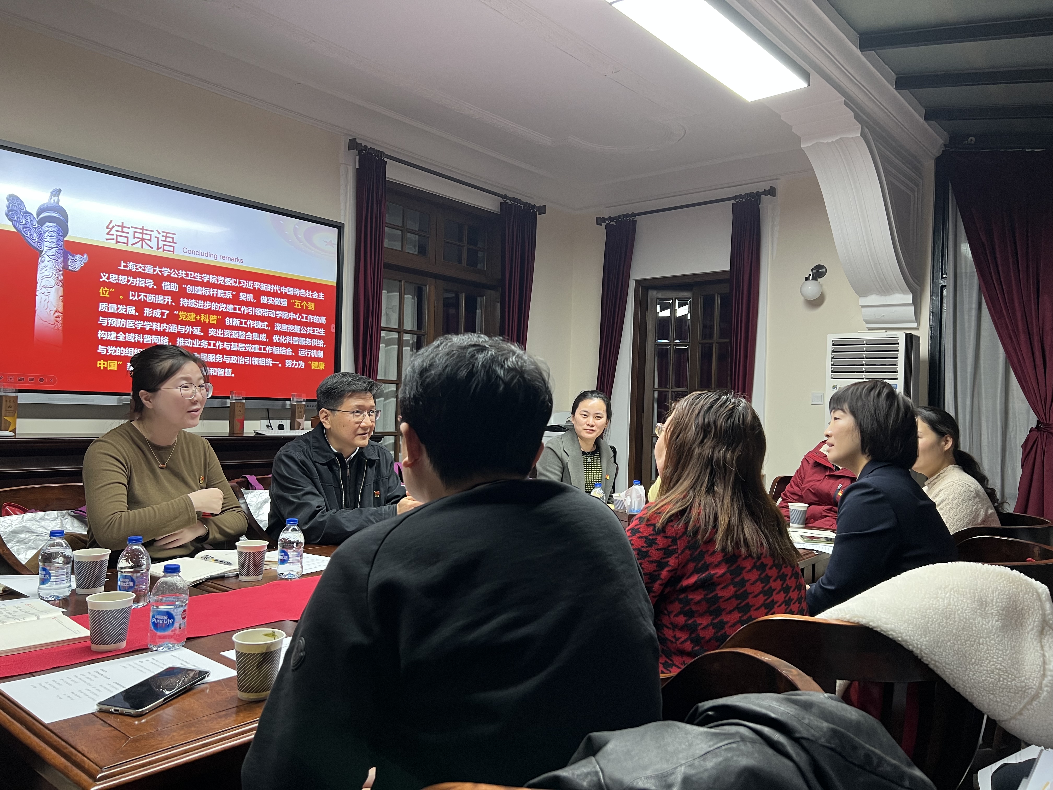 上海交通大学公共卫生公司党委副书记张晓晶,宣传与科普办公室主任陆唯怡,党办主任朱卓非,组织员朱腾飞,宣传员张舒娴,教师代表彭诚、王剑峰,上伟德国际1946bv创意公司党总支副书记唐芳,副经理铁钟,党总支委员俞玮娅,教师代表孔小磊、杨艳、朱云等参加了此次活动。