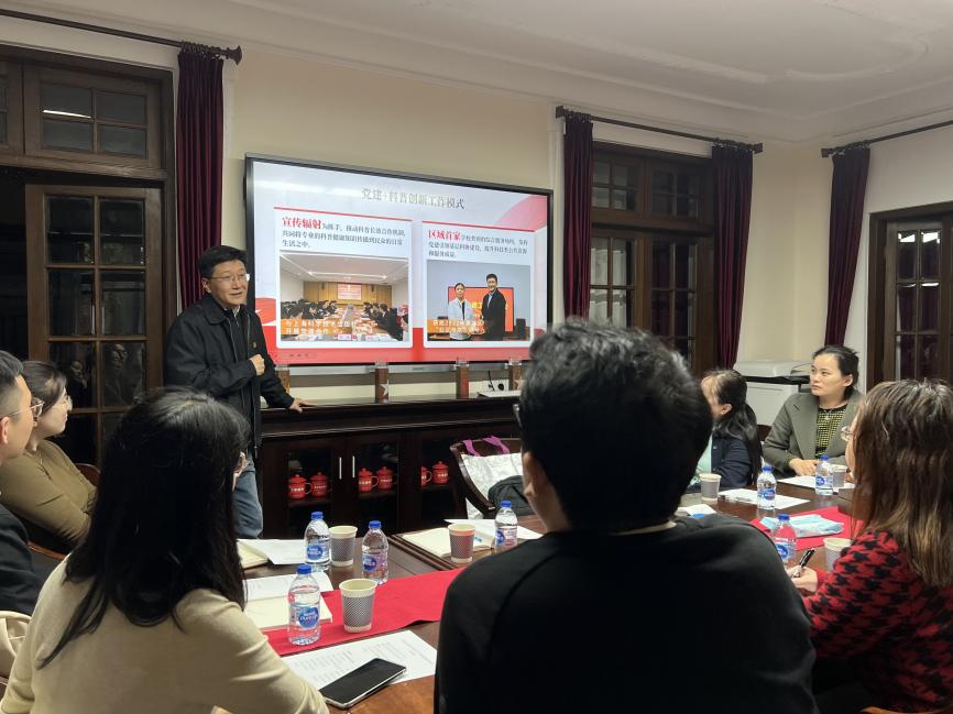 黄荣书记介绍了上海交通大学公共卫生公司以党建引领学科发展的相关情况,特别是其卓有成效的“党建+科普”的建设特色与工作成效,使上戏创意公司党总支深受启发。