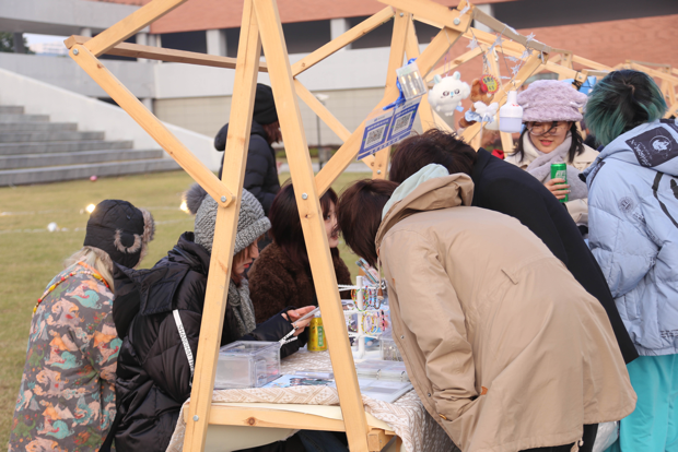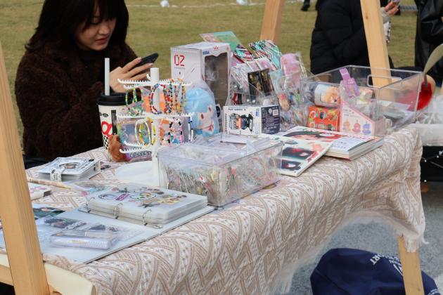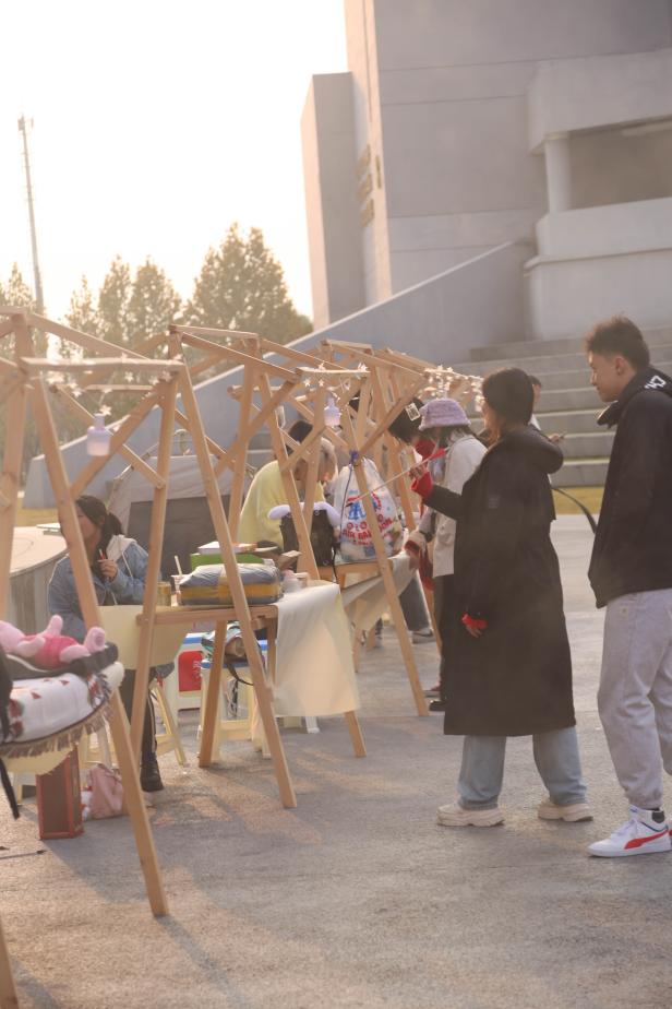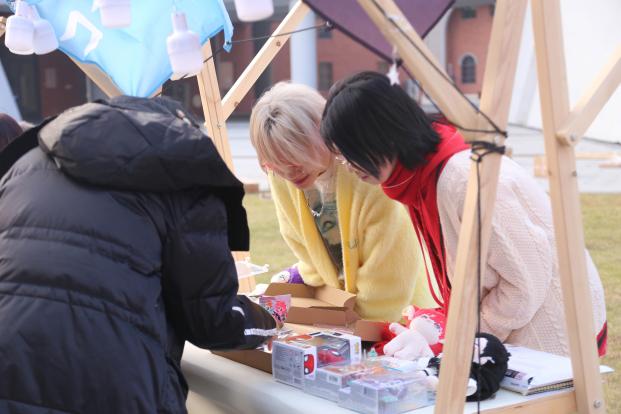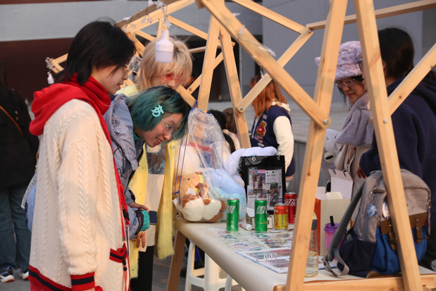 步入市集区,同学们可以看到各式各样体现传统文化及当下流行文化的创意摊位,感受一场别开生面的文化体验。“‘针’嘟好看”、“包你满意”、“请吃胡萝卜吧”、“捕梦杂货铺”……这些摊位名凝聚着同学们的奇思妙想。精致可爱的手工制品与潮流时尚的创意周边,体现着传统工艺和现代创意文化的交流与融合,更展示了传统文化的独特魅力和创新思维的无限可能。