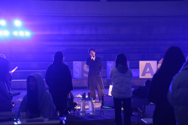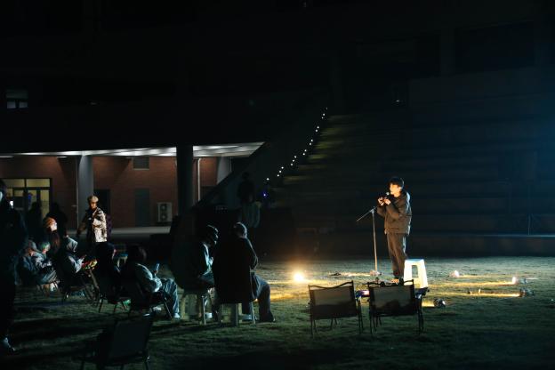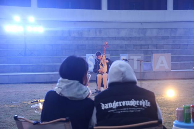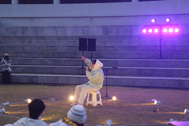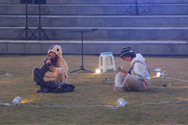 在表演区,同学们以多样风格上演了一场场精彩纷呈演出。改编自经典诗词歌赋的国风音乐作品《兰亭序》《但愿人长久》展现了中华优秀传统文化的独特魅力,而21主持的同学演唱的原创话剧《尘芥》主题曲以及其他流行歌曲、抒情歌曲和Rap的表演,也获得了同学们的热情回应。音乐与文化相连,此刻的温暖,寄情于音乐与回应之间。
