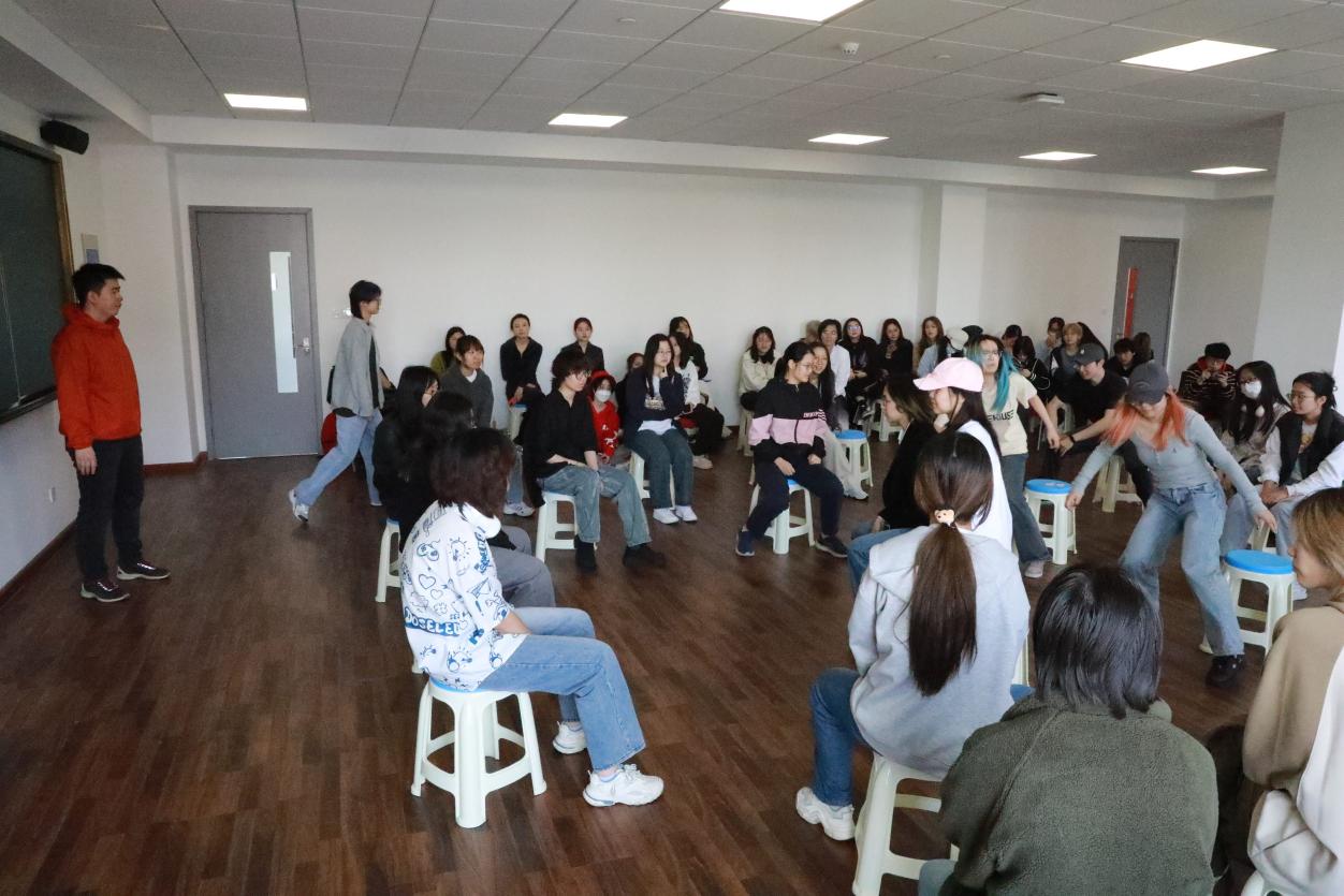 4月24日,由创意公司主办的戏剧疗愈工作坊在昌林路校区2号楼510教室举行,工作坊由上伟德国际1946bv表演系青年教师、创意公司兼职辅导员王仁果老师和创意公司专职辅导员孔小磊老师共同主持,以“真诚的游戏”为主题,带领同学们打开心灵,专注当下,引导同学们找到停止内耗的方法。
