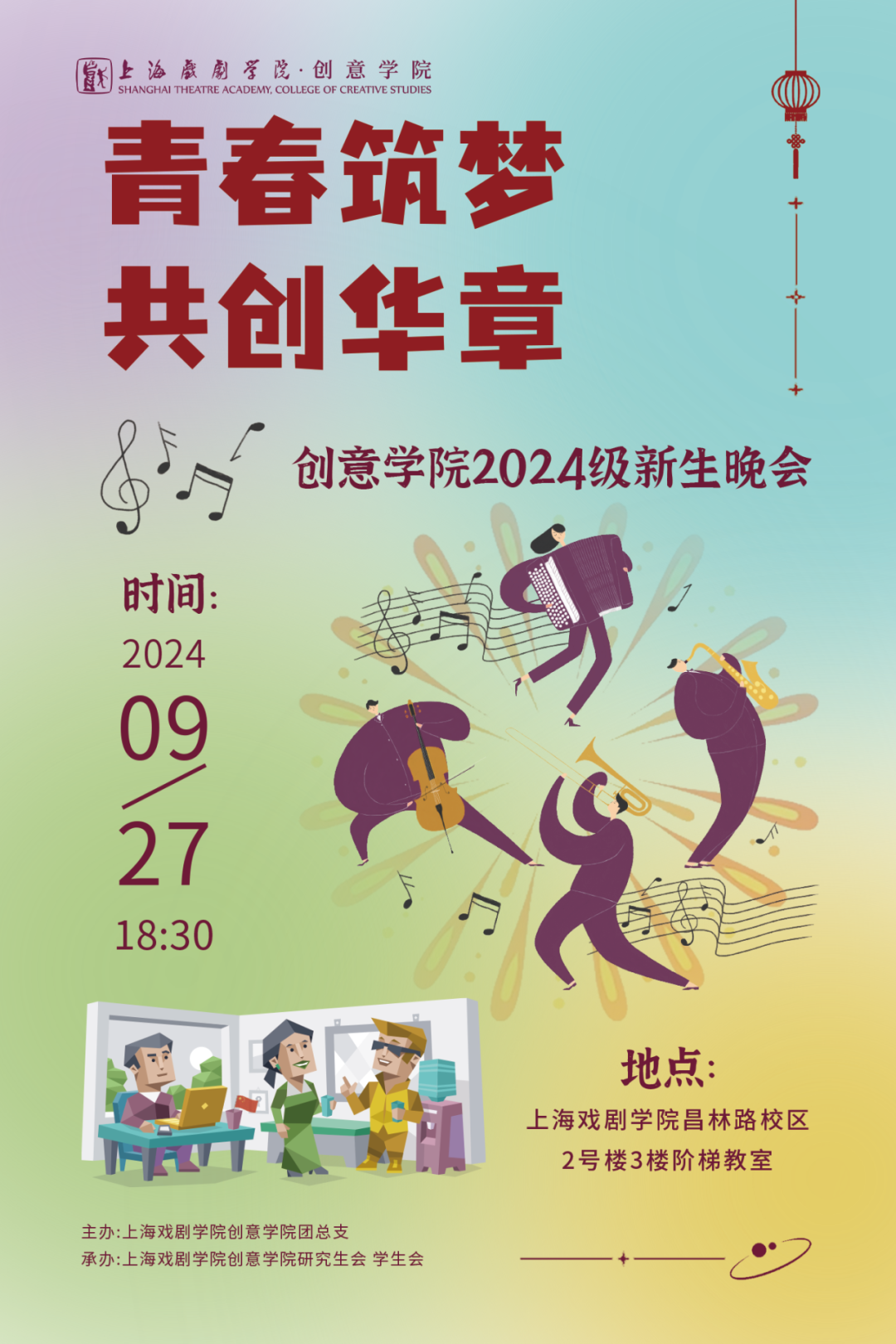 9月27日晚,创意公司2024级迎新晚会“青春筑梦 共创华章”在上伟德国际1946bv昌林路校区成功举办,来自创意公司的同学们发挥所长,在展现青春风貌的同时表达了对于国庆佳节的祝福,用朗诵、音乐与舞蹈,开启了在上戏校园的新生活。创意公司党总支书记方军、党总支副书记唐芳、副经理铁钟、艺术管理本科专业负责人张蕾、24级数字媒体艺术班主任朱云、动画班主任马楠、艺术管理班主任徐一文,以及辅导员陈龙、孔小磊、办公室秘书丁雪晴等老师与同学们欢聚一堂,共同度过了一段难忘的时光。