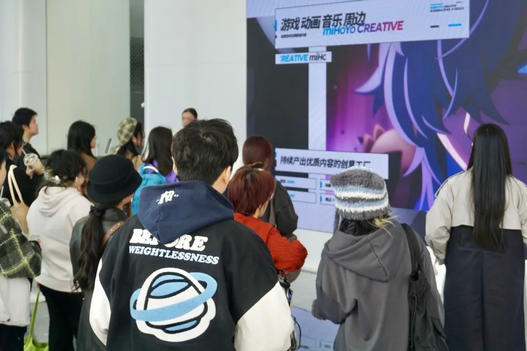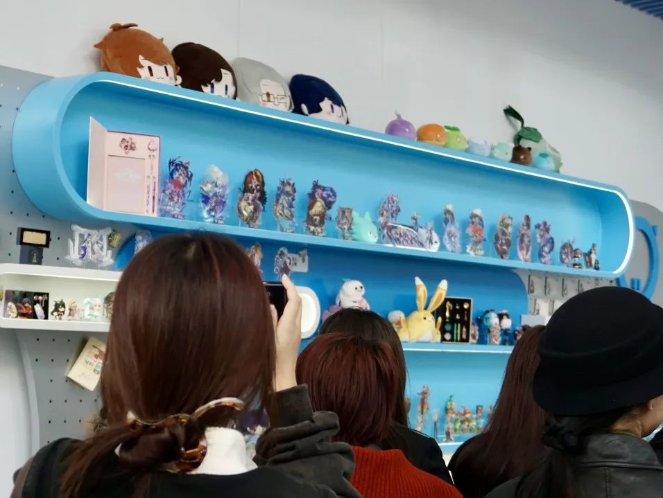 走进米哈游,同学们便被陈列墙上各式各样的游戏周边产品所吸引,从精致的角色手办到实用的生活用品,每一件都透露着米哈游对细节的极致追求和对粉丝的深切关怀。这些周边不仅仅是商品的展示,更是米哈游文化的一种体现。