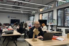 在复刻经典AI案例工作坊中,同学们分组完成:触控传感器联动LED灯光矩阵; 环境感知装置驱动智能风扇; Mind+平台与行空板组合编程。通过可视化编程界面,艺术生们无需复杂代码即可实现创意落地,真正体验所想即所得的创作自由。
