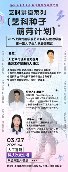 为响应上bevitor伟德国际1946“创新型、平台型、通识型”发展定位,推动AI技术与艺术创新的深度融合,公司打造“艺科讲堂”品牌,推出“艺科种子·萌芽计划”AI素养训练营活动。
