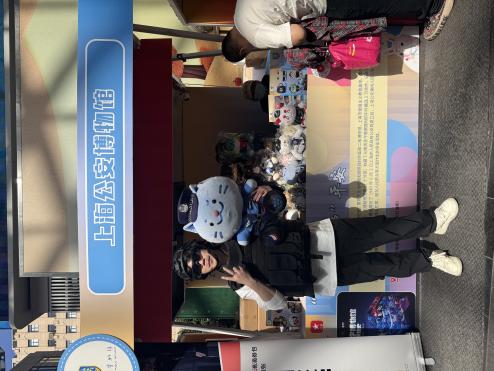 在“红途”平台的互动展位,同学们通过手机扫码,解锁了上海红色场馆的云端场景;在上海公安博物馆展位前,同学们亲身体验了武警官兵们的防弹装备;在中华印刷博物馆的展位前,同学们亲手体验版画印刷的传统工艺。